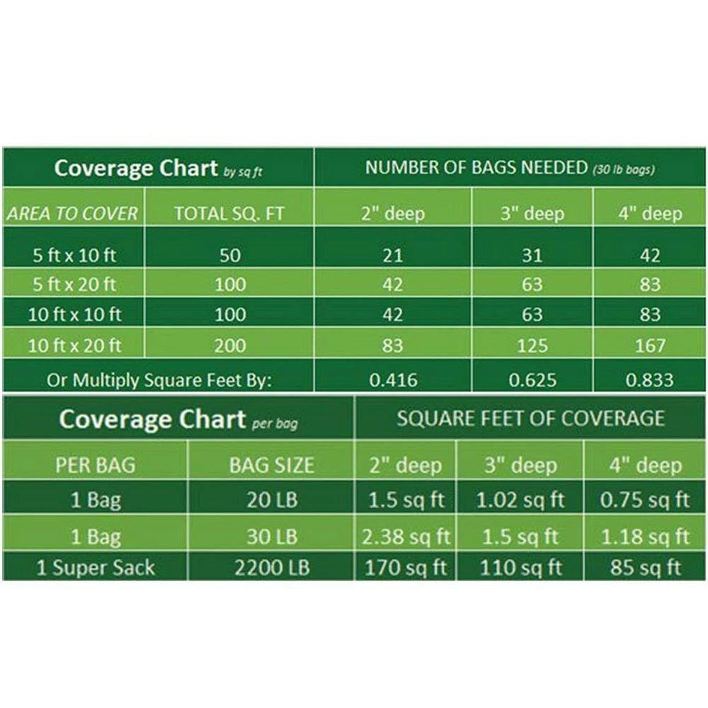 - Coverage area of 1.5 sq. ft. x 3 in. D, 2.38 sq. ft. x 2 in. D